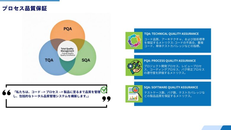 TQAは、システム開発における最も重要な要素である「技術品質」を管理します。