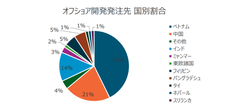 2025年も、オフショア開発先として最も多く選ばれた国はベトナムであり、全体の43%を占めました。