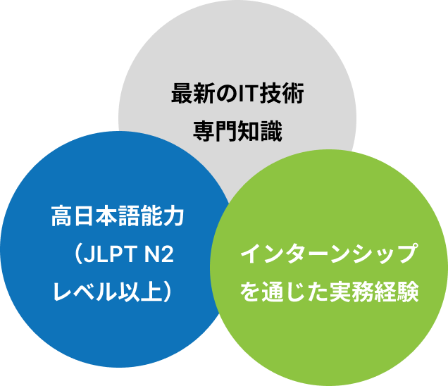 一般的な人材紹介サービスとは異なり、私たちは教育プログラムの設計段階から関与。貴社の求める最新技術ITスキルと、高日本語能力を確実に習得し、教育背景が明確なエンジニアのみをご紹介します。